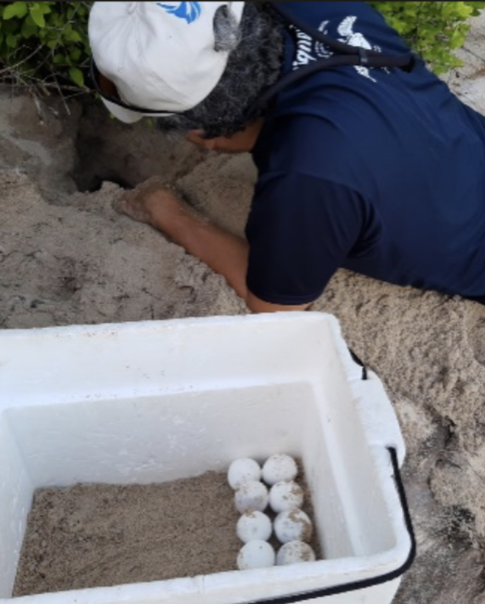 Tipo de protección: patrullaje de playas, marcación, protección y seguimiento de nidos in situ, determinación de la sobrevivencia y nacimiento de crías por exhumación de nidos y transferencia a otros sitios o a hieleras cuando peligran por inundación o por algún fenómeno metereológico como mareas y huracanes.